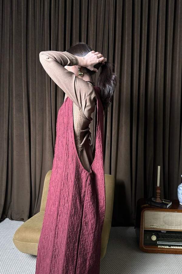 A refined silhouette shaped with gentle structure and natural flow and a corset back